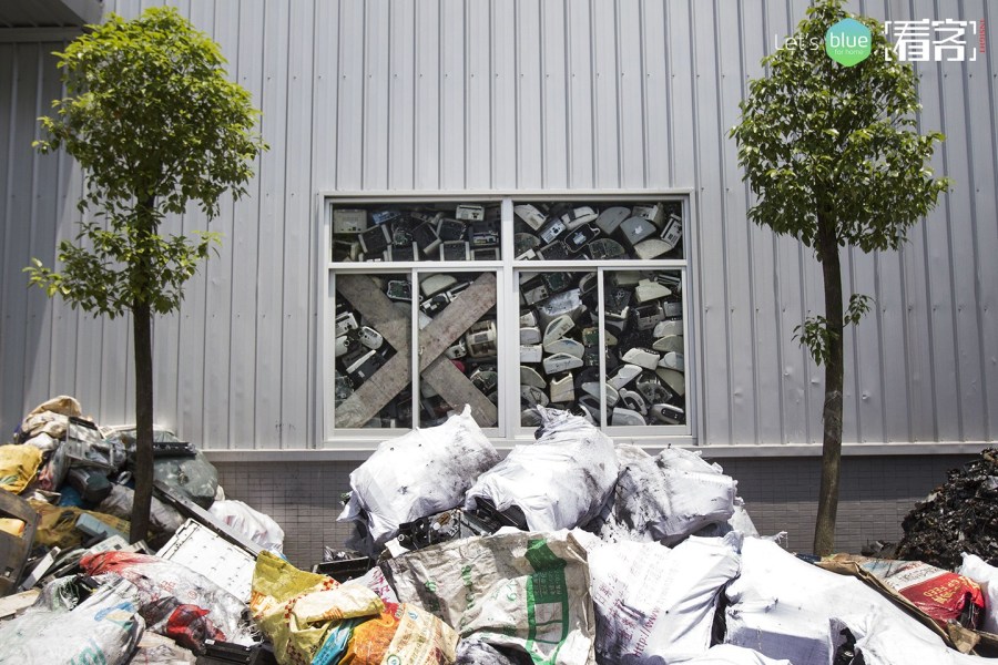 目前,贵屿每年要接收数百万至近千万吨的电子垃圾。其中手机、电脑等快速更迭的电子产品占了大头。图为2016年6月2日,贵屿循环经济产业园区,厂房的电子垃圾堆得满满。