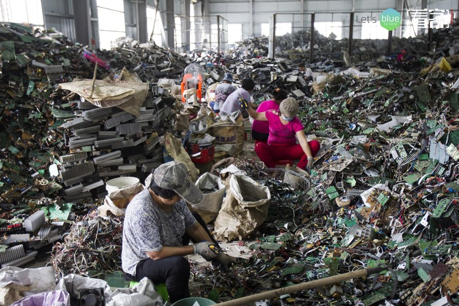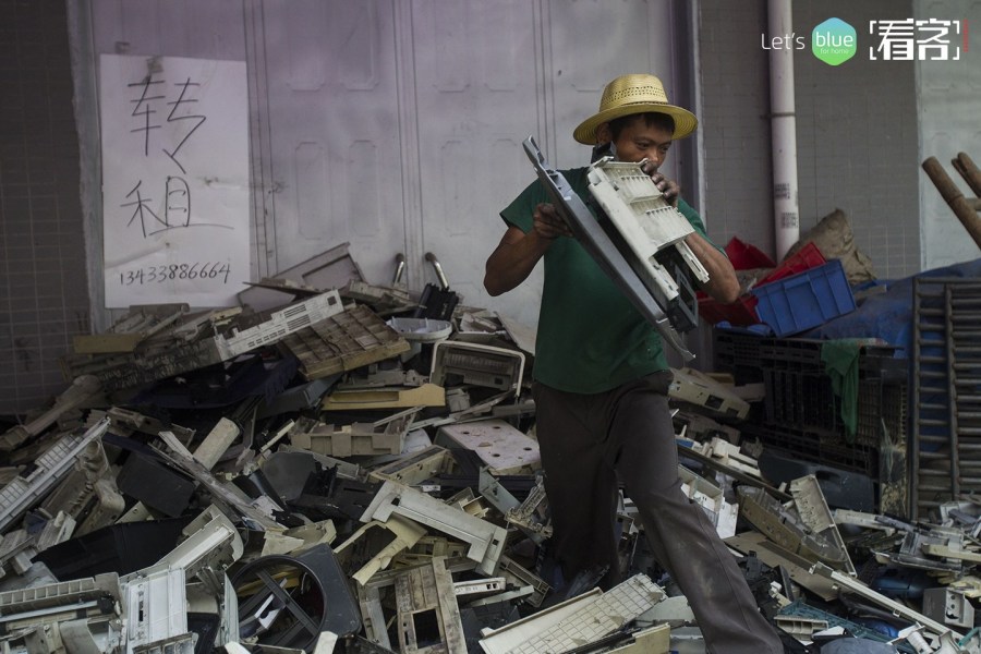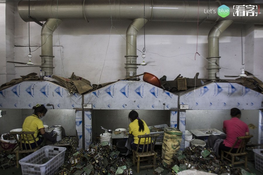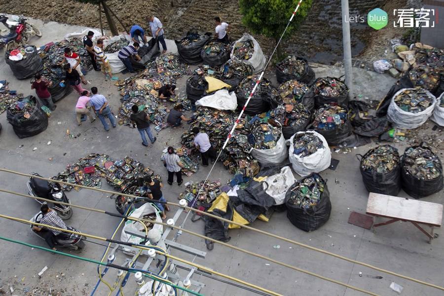 长久以来,贵屿是全球电子垃圾的倾倒地,货源主要靠“进口”。尽管中国法律明文规定禁止进口废弃电子垃圾,但贵屿的工厂老板仍能依靠各种渠道走私获得来自世界各地的电子垃圾。据了解,贵屿的电子垃圾主要来自日本、美国等发达国家,会途径香港和台湾,然后再进入深圳、南海、广州等地。 图为2016年6月3日,工人正在将运来的电子垃圾验收、分类。
