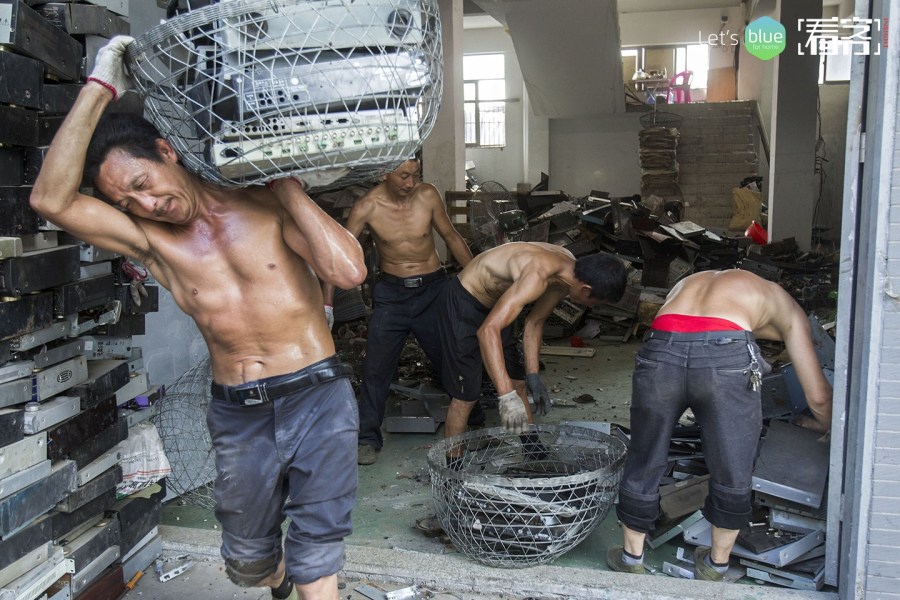 在全球范围内回收电子垃圾的同时,中国也已经成为了世界第一大电子垃圾生产国,2015年中国内部回收利用的废弃电子产品达1亿5274万台。预计到2031年,电子产品报废量将达到5.16亿台,计1300万吨。图为2016年6月1日,贵屿循环经济产业园区,搬运工正在搬运分类好的电子器件。