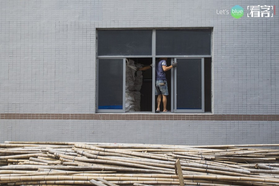 贵屿电子垃圾工厂的雇佣方式非常灵活,工人在一家工厂的停工暂歇时间也可自行组队去别家工厂工作。只是,无论在哪家工厂,工人都无法得到保险、职业病防护等应有的福利待遇。工人面对“是否有定期体检”的问题,面露困惑,他们有些甚至不了解这份工作潜在的危害。图为2016年6月5日,贵屿循环经济产业园区,一名工人站在窗上准备搬下堆的高高的电子垃圾,无任何防护措施。