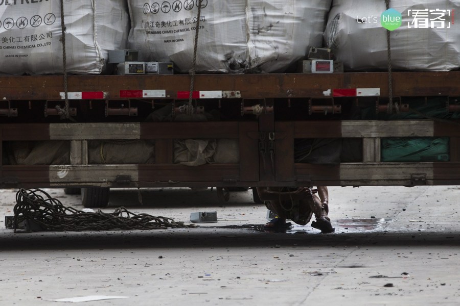 2016年6月5日,贵屿循环经济产业园区,一名工人用货车的水槽清洗手脚。