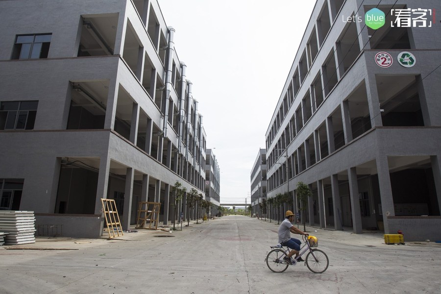 2014年的报道称,贵屿电子垃圾产业的产值每年已达千亿元,数值达到了汕头市GDP的一半。如今,实行“集中拆解、集中治污”的贵屿“电子垃圾村”仍在扩建,一排排空档的厂房正等待着更多厂家的加入。图为2016年6月5日,贵屿循环经济产业园区,工业园第四期的工程已经建成,大部分的厂房还没有工厂入驻。